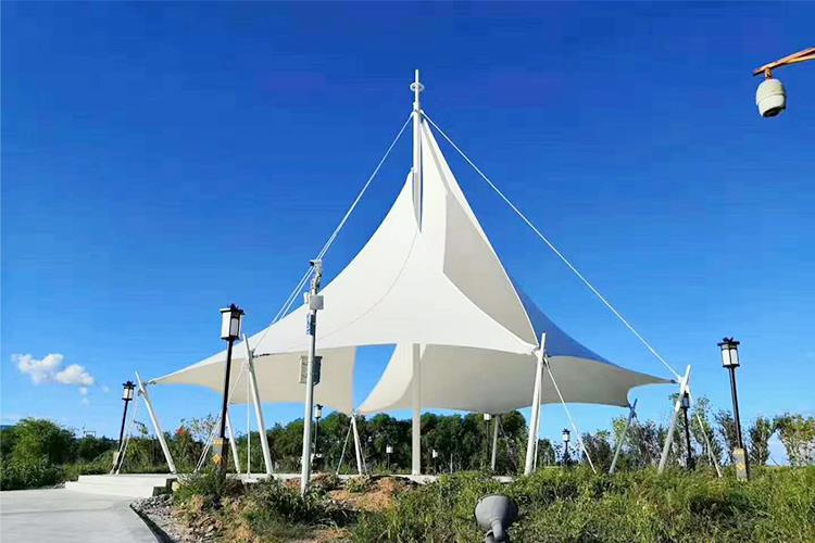 簡單的連接方式是將鋼索傳到和膜材熱熔的邊套中,主要工程項目能夠選用鋁合金型材或不鏽鋼夾板和連接件來連接膜材和鋼索,當膜材直接連接於鋼度界限處時,要盡量減少出現直角或銳角界限形狀,以降低安裝難度係數,並防止造成應力。