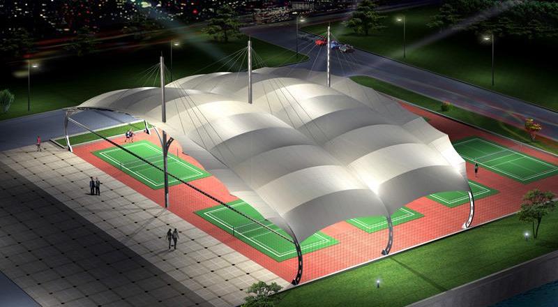 網球場張拉膜采用膜原材料的益處:由於膜原材料自身重量輕,具備優良的承受力特性——成為大跨度空間結構的主要形式之一。網球場黄瓜视频APP下载安装建設成為當代城市規劃建設的關鍵構成部分,變的越來越重要。黄瓜视频APP下载安装輕便、別具一格的造型設計在網球場、籃球場等球場的基本建設中擔當了重要角色,除了考慮防風防雨、防日曬等基本要素外,並有很好的標示招攬效果,呈現了人們的個性化的一麵。